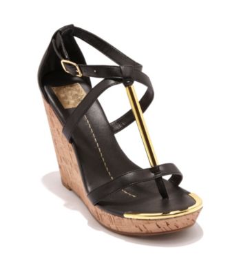 These Tremor faux-leather T-strap wedges from DV by Dolce Vita are the perfect addition to your spring and summer wardrobe collection. Features gold-tone metal accents at the toe and strap; adjustable side buckle closure and a cork wedge. Fits true to size