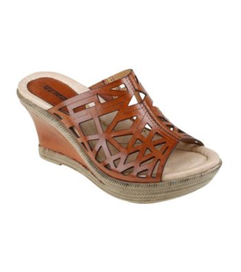 Sandals. Web exclusive! Contemporary style for any occasion. Behold the stately beauty of this mid-height Earth "Sugarpine" Wedge Sandal that infuses wellness into your every step. With an intricate birdcage style design and braided midsoles, these sandals capitalize on two of the season s hottest trends! Step out with a look you love in these great sandals. Featured in alpaca Full-grain leather 3.125" heel Full-grain leather Imported