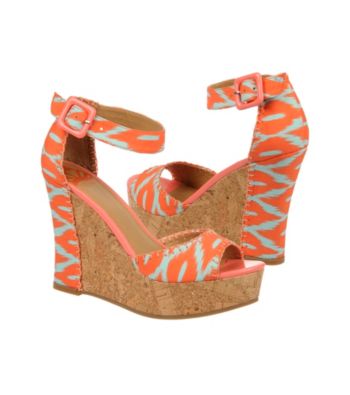 Sandals. The only question you ll have to answer is where you bought these fabulous shoes! Pair that stellar dress with the Fergalicious "Quiztime" Casual Wedge Sandal and prepare to look stunning. A 4 wedge heel adds sassy to your stride, a rounded open toe shows off your pretty pedicure and an adjustable buckle provides a comfortable fit. Include the ikat patterned fabric upper and you can be certain these casual wedge sandals will create eye catching style for any ensemble. Featured in coral 4" heel 1" platform Adjustable buckle Ikat fabric Manmade outsole Imported